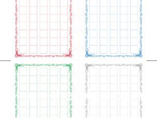 M5(ミニ5穴) 手帳リフィル 原稿箋 4色アソートミニ5穴の手帳リフィルです。A4の表裏に4枚を印刷する2ページ分のPDFファイルになっています。自分のプリンターでは問題なく印刷できていますが、他のプリンターではわからないので教えてくれると助かります。ご自由に印刷してお使いください。改変と再配布、.........