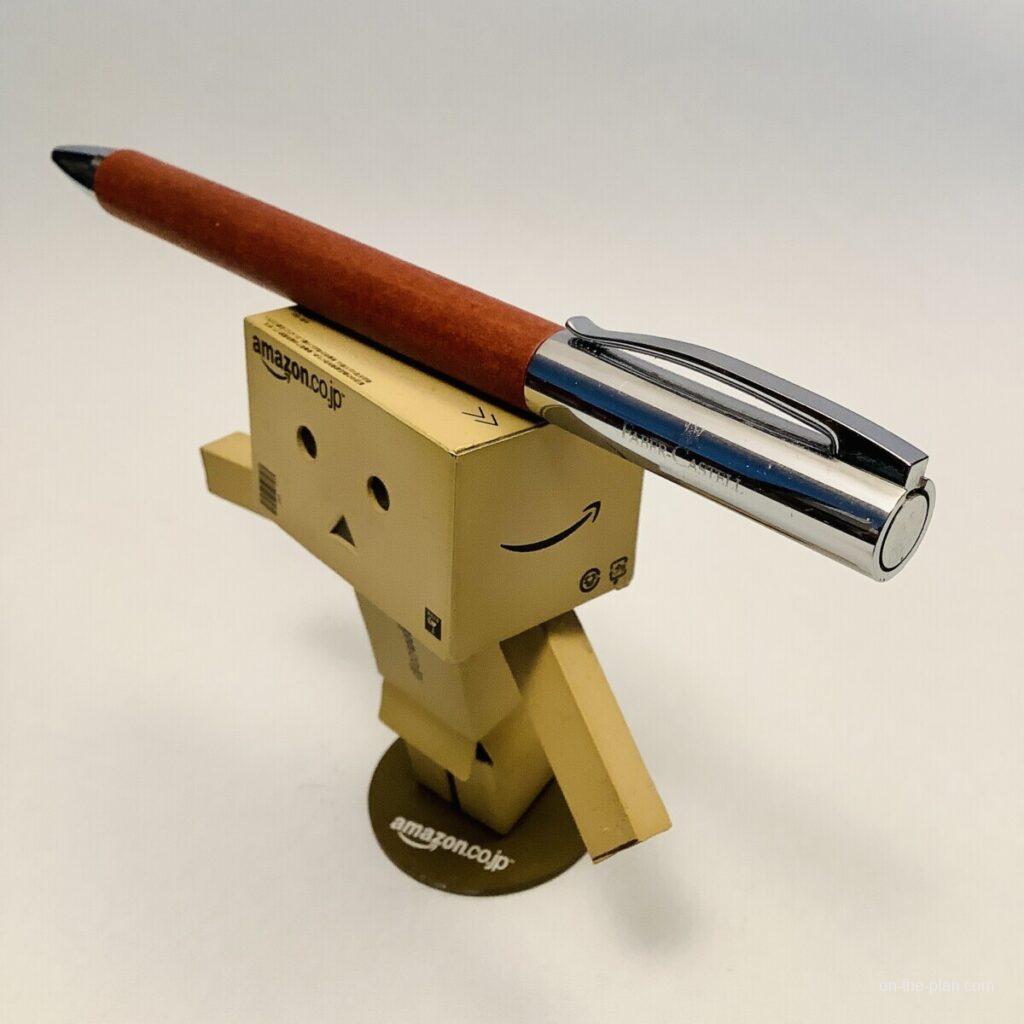 ファーバーカステルに凝っていた頃、机にお迎えしました。フリクションボールとほぼ同じぐらいの長さですが、かなり重いです。重心がクリップ側にあって、好みが分かれるところです。慣れてくるとこの重みがクセになってきます。いやはや(^^)