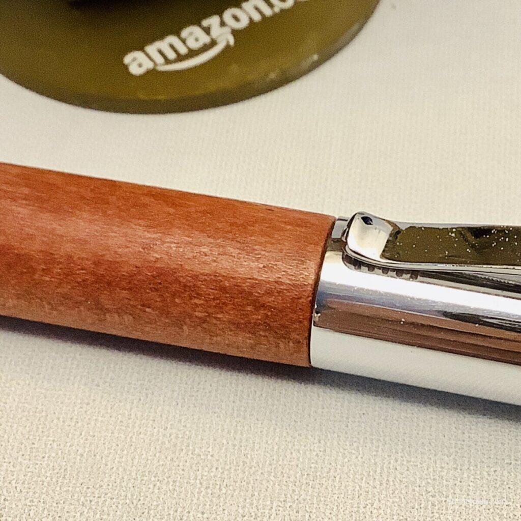 ファーバーカステルの木軸油性ボールペン、アンビション梨の木ペアウッドを使っています。クリップ側に個性的な重量感が有るボールペンです。使い方などの参考にレポートします。